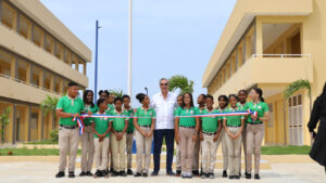 El presidente Luis Abinader inauguró en San Pedro de Macorís varias obras que incluyen un liceo, un puente peatonal, un...