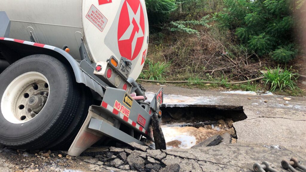 Tanquero derrama combustible en avenida de Santiago al caer en un hoyo