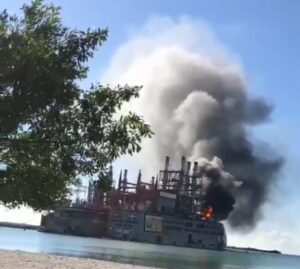 Un fuego se registró ayer en la barcaza que opera la empresa Karpowership Dominicana, en Pueblo Viejo de Azua, según...