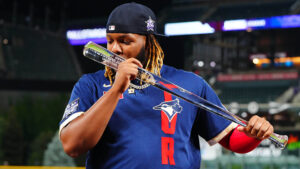 Washington, 15 jun.- El toletero dominicano de los Azulejos de Toronto Vladimir Guerrero Jr. celebra su designación como el Jugador...